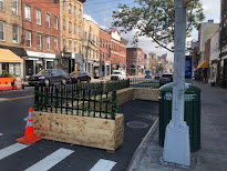 I also went on my first bike ride since our return, and rode first, past lots of bars and restaurants creating outdoor spaces, some makeshift lots consisting of random pallets and traffic cones, and others much more elaborate with plants and matching decor.